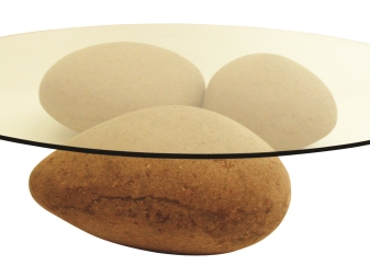 - “الحجارة”. يمكن تقدير هذا الجدول من قبل عشاق الشرق. إنه مصنوع من الزجاج والحجر ، مما يجعله أنيقًا ، وفي نفس الوقت ، فهو مقتضب ومريح..