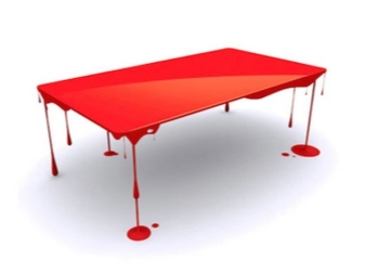 - طاولة “نازف”. يقطر طلاء أحمر ساطع من سطح مستطيل ويطفو في الهواء – يتم إنشاء مثل هذا الانطباع بواسطة كائن التصميم هذا ، والذي بالكاد يمكن تسميته طاولة..