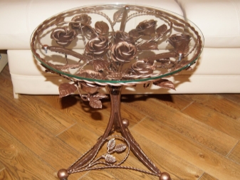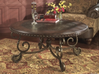 - معدن. تتميز طاولات القهوة المزورة ، على الرغم من وزن المعدن ، بمظهر خفيف وجيد التهوية. إنها متينة ، ولا تخاف من الرطوبة أو درجات الحرارة القصوى. هذه المادة صديقة للبيئة ، ولا تسبب الحساسية ، لكن الكثيرين لا يحبونها بسبب البرودة..