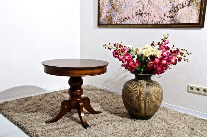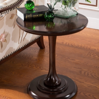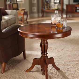 أيضا ، يمكن أن تحتوي الطاولة المستديرة على ثلاثة أرجل. هذا البند يبدو مثيرا للاهتمام. يمكن أيضًا استخدام الإصدار الكلاسيكي من طاولة الطعام على أربعة دعامات في نسخة مصغرة من طاولة القهوة. هذا هيكل مناسب إلى حد ما يمكن توصيله بأي شكل من أشكال سطح الطاولة..