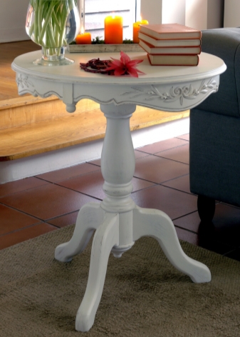 سيكون اللون الأبيض تحت طاولة عتيقة سمة ممتازة في غرفة المعيشة المزينة بأسلوب بروفانس.