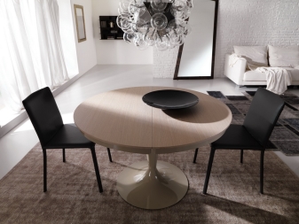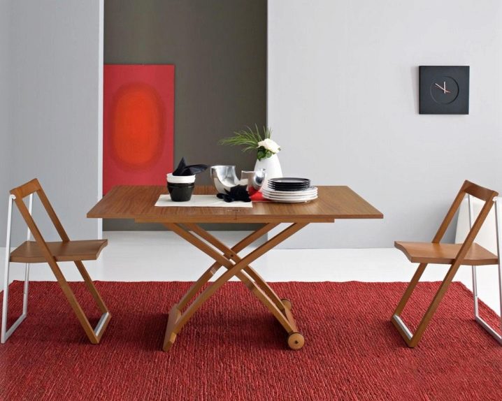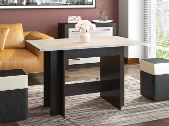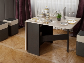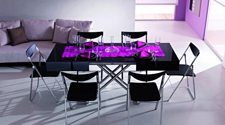 في العديد من الشقق ، نظرًا للمساحة الصغيرة ، لا يمكن تصميم غرفة منفصلة لغرفة الطعام ، والمخرج من هذا الموقف هو إنشاء تصميم مع طاولة قابلة للطي لغرفة المعيشة. بفضل التصميم المريح ، تسمح هذه المنتجات القابلة للطي بالتقسيم الأصلي للمساحة إلى منطقة ترفيه وتناول الطعام..