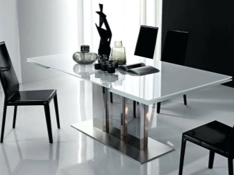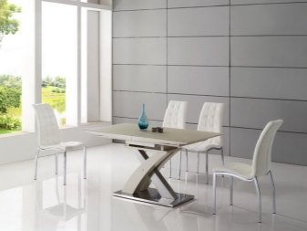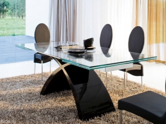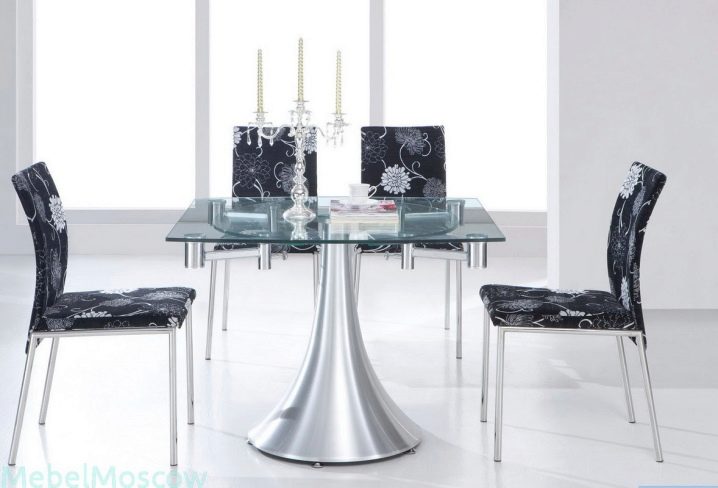 يوصي معظم المصممين باستخدام داخل الغرف أثاث زجاجي. يمتزج الزجاج جيدًا مع المعدن ويتناسب مع الأساليب الفنية أو العلوية أو عالية التقنية. تبدو أسطح العمل الزجاجية أيضًا جيدة في اللون ، ولكن لهذا يجب أن يتم تزيينها بشكل إضافي بالرسومات.