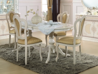 - مستدير. بصريا ، تذكرنا إلى حد ما بالتصميم البيضاوي. له مظهر أنيق ، مصغر ، مضغوط. سارت الامور بشكل جيد مع الأثاث الكلاسيكي. تبدو الأرجل المنحوتة غير عادية في مثل هذه المنتجات ، فهي تكمل بشكل جميل داخل غرفة المعيشة.