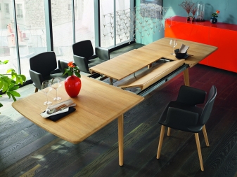 يمثل سوق الأثاث اليوم مجموعة واسعة من الطاولات القابلة للطي ، بدءًا من نماذج الكتب إلى التصميمات الأصلية مع إدخالات إضافية في الوسط.. اعتمادًا على شكل الجداول ، يتم تمييز الأنواع التالية: