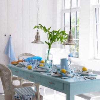 لا ينبغي أن تتلاءم الطاولة مع تصميم الغرفة بشكل عضوي فحسب ، بل يجب أن تمنح الجو أيضًا الحالة المزاجية المناسبة.