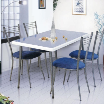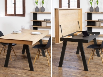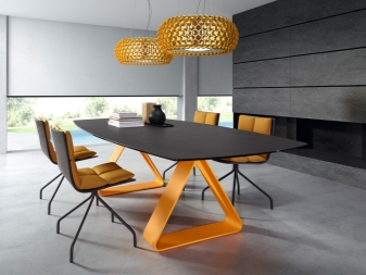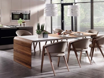 أيضًا ، لعشاق الأشياء المثيرة للاهتمام في الداخل ، يوجد لدى الشركات المصنعة طاولات يتم فيها دمج المواد بنجاح.