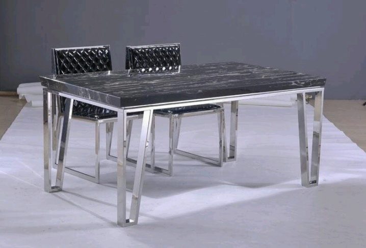 يبدو أن الإطار السفلي مجرد تفاصيل غير واضحة لا تؤثر بأي شكل من الأشكال على صورة الداخل. ضع في اعتبارك العديد من المجموعات المتناغمة ، حيث أعطت القاعدة المعدنية للطاولة الجو أسلوبًا خاصًا ولمعانًا..