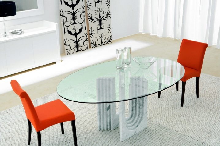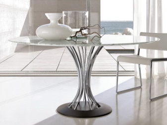 يختار العديد من المستهلكين الأثاث بهيكل سفلي ، ليس فقط بسبب أدائه ، ولكن أيضًا بسبب تصميمه الأصلي والجمالي. تجدر الإشارة هنا إلى أن الهياكل المعدنية تبدو رائعة مع مواد أخرى. على سبيل المثال ، في التصميمات الداخلية المتعلقة بالأنماط الحديثة ، غالبًا ما تستخدم هذه النماذج (بالكروم) في تصميم طاولة زجاجية أنيقة..