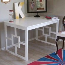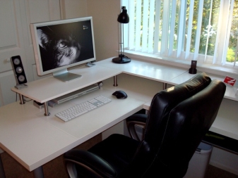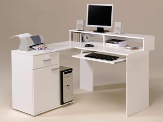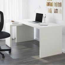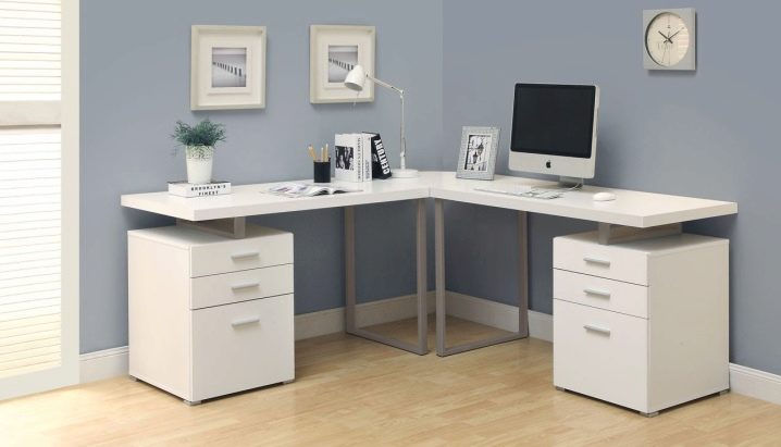 سيساعدك الشعور بالخفة التي يمكن أن يجلبها اللون الأبيض على الاسترخاء أثناء فترات الراحة في العمل. سيسمح لك عدد كبير من الأدراج بوضع جميع مواد الكتابة الخاصة بك. سيتم توفير مساحة إضافية للوثائق من خلال الطرز المزودة بحجر الرصيف. مع نفس النجاح ، سيتم تنفيذ هذه الوظيفة بواسطة الرفوف.