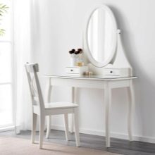 طاولات الزينة من ايكيا ، التي لن يمر دون أن يلاحظها أحد من قبل النصف الجميل للبشرية ، لا تخلو من النعمة ، ولكنها في نفس الوقت عملية ومريحة. يمكن تزيين النماذج بالمرايا والأدراج ، حيث يمكن بسهولة “إخفاء” جميع أسرار النساء.