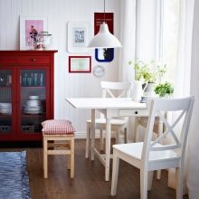 يمكن العثور على عينات مضغوطة جدًا في كتالوجات Ikea. سوف يزين اللون الأبيض لمثل هذا النموذج المناطق الداخلية ، ويخلق منطقة من الراحة..
