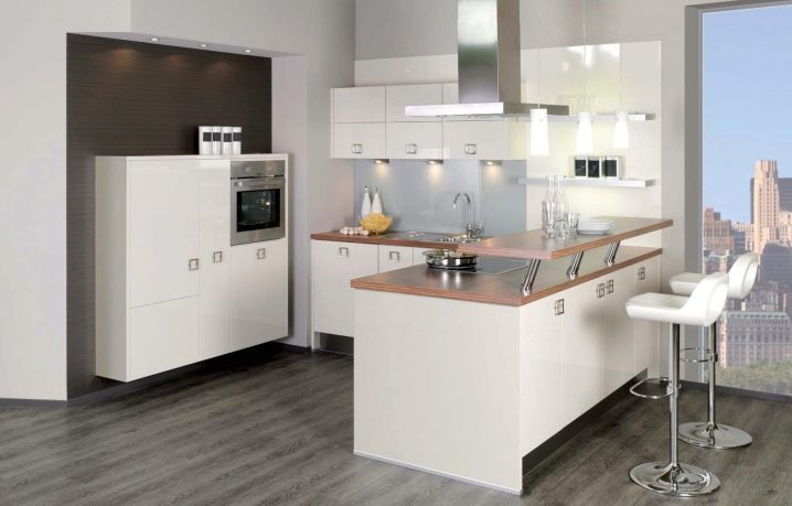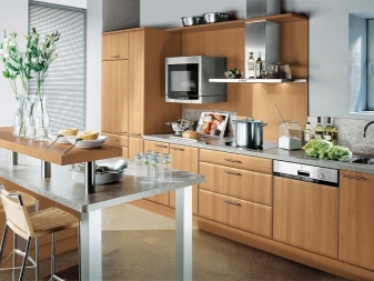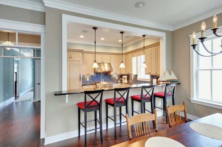 يجب أن يكون المطبخ مريحًا ، لذلك ، عند التخطيط له ، من الضروري توقع الترتيب الصحيح للأثاث مسبقًا. هذا ينطبق أيضًا على طاولة البار. بشكل فردي ، عند الطلب. كقاعدة عامة ، تبدو الطاولات المرتفعة جميلة مع طاولات خشبية: