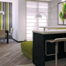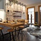 - مستويين. يستخدم لشقق الاستوديو ، وهو عبارة عن هيكل يتكون من طاولة بار وطاولة طعام.
