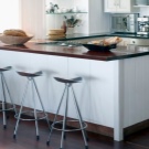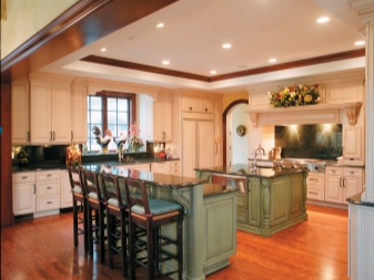 - جزيرة. خيار أثاث لا غنى عنه لغرفة كبيرة. في مثل هذه الطاولة ، يتم الجمع بين جميع وسائل الراحة بشكل مثالي ، من الحوض المدمج إلى أدوات المطبخ..