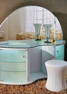 - زجاج. في السابق ، كان من الممكن استخدام النماذج الزجاجية فقط من أجل التبسيط ، لكن التقنيات الحديثة تسمح لك بالحصول على طاولات خلع الملابس مثيرة جدًا عند المخرج ، والتي ستكون زخرفة ممتازة للأسلوب الكلاسيكي ؛