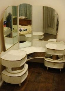 - الثلاثي – نموذج شائع جدًا ، والذي يتضح في معظم الحالات أنه نصف قطر. عند استخدام منضدة الزينة هذه ، يجب أن تكون حذرًا للغاية ، لأنه في الأحجام الكبيرة يمكن أن تبرز من الداخل وتجذب الانتباه ؛