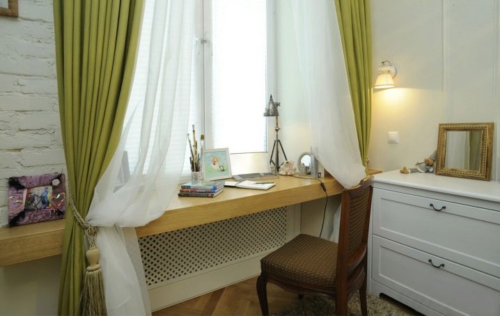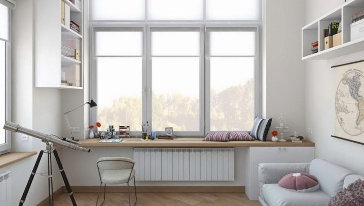 يحتوي هذا التصميم أيضًا على العديد من الميزات المحددة التي يمكن أن تصبح عقبة بالنسبة للبعض. لذلك ، توجد البطاريات وأجهزة التدفئة في الغالبية العظمى من الحالات تحت النوافذ ، مما يعني أن سطح الطاولة سيغلقها إلى حد ما ، مما يمنع الهواء الدافئ من الدوران الكامل وتدفئة الغرفة بجودة عالية.