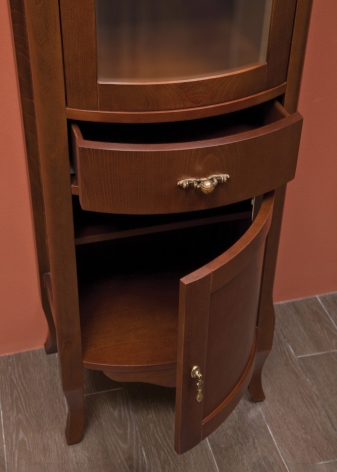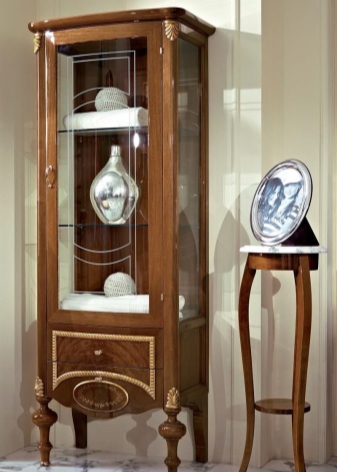 - في وجود أبواب زجاجية ، يمكن أن تعمل كخزانة عرض – كبديل للجدار الكلاسيكي ، وغالبًا ما تستخدم لإظهار الأطباق الجميلة والتحف والعديد من الهدايا التذكارية المثيرة للاهتمام ، ربما بقفل.