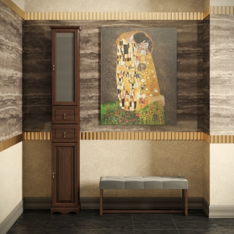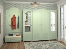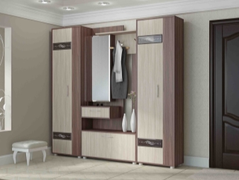 - في القاعة يتم وضع خزانة ضيقة ، بها مقصورات مفتوحة ومغلقة. يمكنك توسيع وظائف الأثاث عن طريق وضع خطافات على جانب صندوق الخزانة. يمكنك تعليق حقيبة أو مظلة أو لباس خارجي عليها..