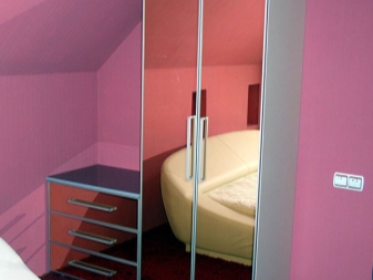يتم شراء خزانة ملابس ضيقة بالزجاج في غرفة النوم. غالبًا ما تكون هذه الطرز أحادية الجناح ، ولكن هناك أيضًا حقيبة مقلمة مزدوجة الجناح بها شريط للملابس. بالنسبة لغرفة النوم ، فإن إصدار الكتان ببابين مع خزانة ذات أدراج مناسب جدًا. تم تجهيز جميع طرازات الخزانات تقريبًا بأدراج عديدة وأرفف متنوعة وسلال خاصة للغسيل..