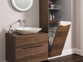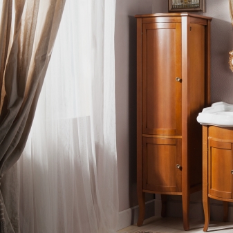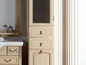 تجدر الإشارة بشكل خاص إلى الفروق الدقيقة في اختيار خزانة مقلمة للحمام. عند اختيار خزانة ضيقة لهذه الغرفة ، يجب الانتباه إلى معداتها. غالبًا ما يكون الأثاث مجهزًا بالفعل بالعديد من الأرفف ، وفي بعض الأحيان تكون الوفرة غير ضرورية..