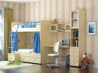 - الى الحضانة يمكن أيضًا وضع الغرفة في مقلمة خفيفة ، بأرفف مفتوحة ومغلقة ، حيث يمكنك وضع الأدوات المدرسية.