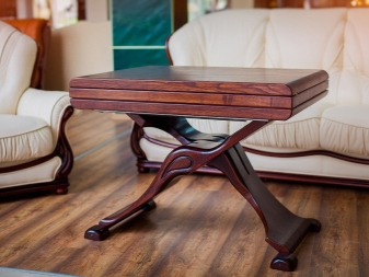- محول. إنها قطعة أثاث مريحة وعملية تساعد على توفير مساحة في الغرفة وتوفير المساحة. تحظى هذه المنتجات بشعبية كبيرة ، خاصة بين أصحاب الشقق الصغيرة. تشغل هذه الطاولات المُجمَّعة أقل قدر من المساحة. قد يختلف حجمها حسب مستوى اليد. عند التجميع ، يمكن أن يشبه الهيكل طاولة قهوة خشبية ، وعند تفكيكه ، يمكن بسهولة استبدال طاولة طعام كاملة يمكن للضيوف الجلوس عليها. تسمح لك هذه النماذج بتحويل سطح الطاولة بالكامل ، وزيادته مرتين أو ثلاث مرات ، كما تتيح لك ضبط ارتفاع المنتج نفسه. تحتوي على أرجل منزلقة ، والتي يمكنك من خلالها ضبط مستوى سطح الطاولة حسب رغبتك..