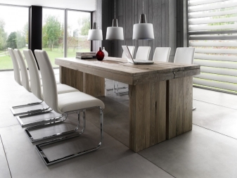 يُعتقد أن أي طاولة خشبية هي نسخة كلاسيكية ، لكن هذا خطأ. لذلك ، على سبيل المثال ، فإن نموذج اللون “البلوط المبيض” سوف يتناسب تمامًا مع أي نمط حديث للغرفة. يمكن أن تكون غرفة حديثة أو ذات تقنية عالية أو حتى غرفة تقنية. بالنسبة لمثل هذه الأماكن ، يتم أيضًا شراء نماذج ذات سطح طاولة مصنوع من مزيج من الزجاج والصلب والخشب. غالبًا ما تستخدم الطاولات الخشبية لتزيين غرفة بأسلوب بيئي أو ريفي أو ريفي. في هذه الحالة ، يتم استخدام نماذج الجدول الأكثر ضخامة والتقليدية..