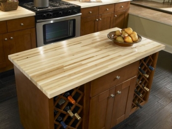 غالبًا ما يكون هذا العنصر من قطعة الأثاث هذه مصنوعًا من الخشب الطبيعي. أقل شيوعًا ، تحتوي على إدخالات مزدوجة مصنوعة من مواد أخرى. كقاعدة عامة ، يتم استخدام مواد الإجهاد الميكانيكية المتينة والمقاومة فقط للتصنيع. عادةً ما تكون الطاولات عالية الجودة هي التي يتم تثبيتها في المطبخ. كقاعدة عامة ، يتم تغطية أسطح العمل هذه بعدة طبقات من الورنيش لمزيد من المتانة..