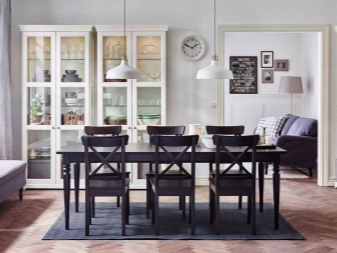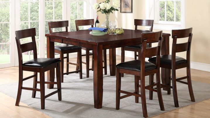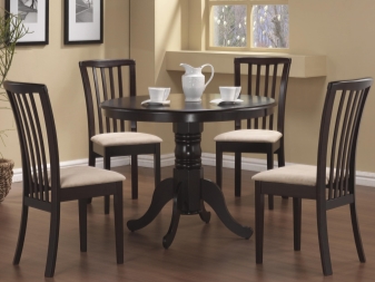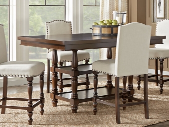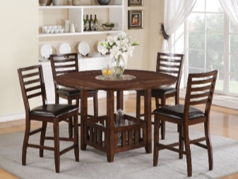 - طاولات الطعام. هذا هو النموذج الأكبر الذي يتميز بأبعاده الكبيرة ورحابته. يتم استقبال الضيوف على هذه الطاولة. يجب أن توفر الإقامة لجميع أفراد الأسرة حتى يتمكنوا من الاجتماع في الصباح لتناول الإفطار أو العشاء في المساء. هذا التصميم كبير لذا فهو غير مناسب لكل مطبخ. يتم تثبيتها في المطبخ أو غرفة المعيشة أو غرفة الطعام المنفصلة. كقاعدة عامة ، يتم دفع هذه الطاولات إلى الجدران أو وضعها في زاوية ، وإذا لزم الأمر ، يتم نقلها إلى منتصف الغرفة حتى يتمكن المزيد من الأشخاص من الجلوس عليها. يتم تثبيت نماذج تناول الطعام ذات الشكل الدائري للغداء في الوسط ، ولا يُقبل وضعها في الزاوية.