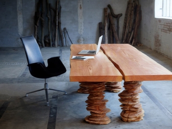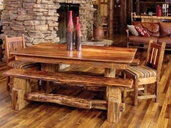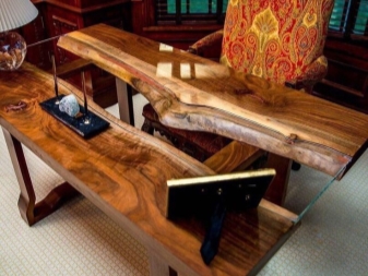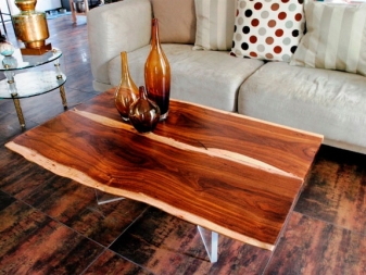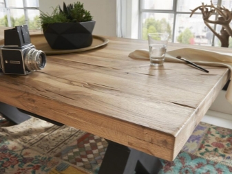 الطاولات دافئة وممتعة الملمس. إنها عملية وعملية. ميزة كبيرة هي المظهر الأنيق للمنتجات ؛ لا يمكن استبدالها بأي طاولة غير طبيعية ، حتى على الرغم من التشابه الخارجي الظاهر. يمكن أن تحتوي الطاولة على منحوتات جميلة ، فضلاً عن نسيج غير عادي يتميز بارتياحها. تبدو المنتجات الخشبية باهظة الثمن ، في حين أنها قادرة على توفير الراحة والهدوء لأي منزل. من السهل جدًا إصلاح أي عيوب في سطح النموذج الخشبي ، لذلك تحتاج إلى استخدام ورق الصنفرة ثم طلاءه.