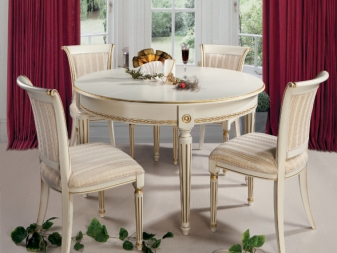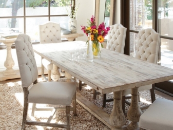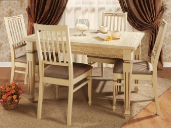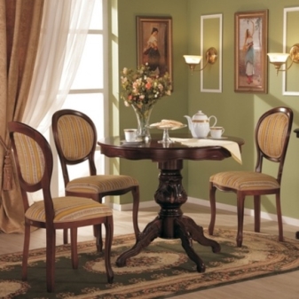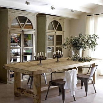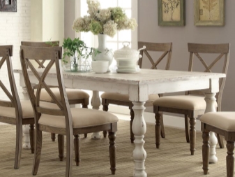 بالنسبة لأسلوب بروفانس ، فإن الطاولات الخشبية الخفيفة والأخف وزناً والأنيقة ذات الأسطح المصطنعة العمر مناسبة. بالطبع ، في غرفة مزينة بأسلوب كلاسيكي ، من الأفضل تركيب طاولة خشبية طبيعية فقط. من الأفضل أن يكون نموذجًا ضخمًا وفاخرًا إلى حد ما بنقوش مخرمة أو غيرها من المكملات غير البراقة والطلاء المزجج.