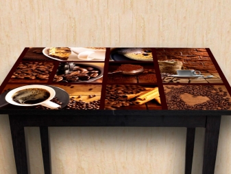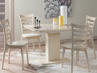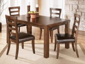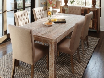 تتناسب طاولة خشبية مع صورة مطبوعة تمامًا مع التصميم الداخلي الحديث. يمكن أن يكون هذا إصدارًا لمجلة أو إصدارًا أكثر كلاسيكية. عند الاختيار ، حاول على الفور التقاط الكراسي الموجودة في المجموعة ، يجب أن تكون متناغمة مع الأرجل وسطح الطاولة. يجب أن تشكل كل قطع الأثاث هذه مجموعة متناغمة واحدة وأن تكمل بعضها البعض..
