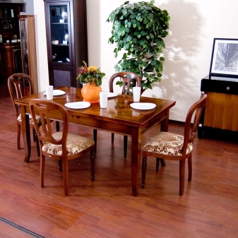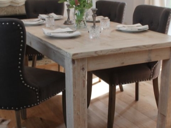 يتم أيضًا اختيار المواد التي تصنع منها الطاولات الخشبية اعتمادًا على استجابتها لتغيرات الرطوبة ودرجة الحرارة. لذا ، فإن الأرز مقاوم للغاية ، لكن نماذج البتولا ، رغم جمالها ، لا تتحمل الرطوبة العالية وتمتص الماء. سوف يجف هذا الجدول بسرعة في ظل الظروف المناسبة. يجب ملاحظة نماذج الصنوبر بشكل منفصل. تبدو أنيقة ، لكنها لا تتسامح مع التلف الميكانيكي الخارجي. وهذا هو سبب استخدام هذا النوع من الخشب في تشطيب وتزيين الطاولات..