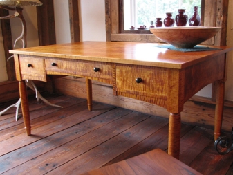 أيضًا ، لتصنيع الطاولات ، يستخدمون خشب السنط ، الطقسوس ، خشب القرانيا ، الكستناء ، التنوب ، العرعر وأنواع الأشجار الأخرى. نماذج بلاطة شعبية – طاولات بقطع خشبي طولي.