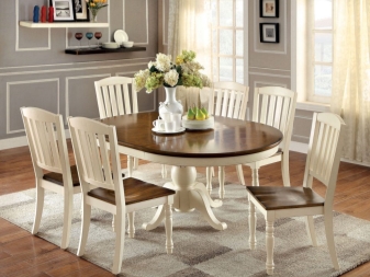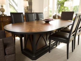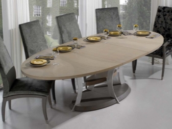 النماذج المستديرة أكثر غرابة. الطاولة البيضاوية مثالية للتركيب في المطبخ إذا كان لديك ركن مطبخ على شكل أريكة. غالبًا ما يستخدم هذا النموذج في غرفة الطعام. تبدو هذه المنتجات فاخرة وجذابة. الطاولات البيضاوية مثالية للمساحات الضيقة من أي حجم. إنها تسمح لك بإضفاء الراحة على التجمعات مع الضيوف ، وتساعد أيضًا على تهدئة الحدود بين كل من يجلس بفضل التحولات السلسة للشكل. مثل هذه التصاميم تجعل المحادثة أسهل وأكثر استرخاء وتجلب الراحة. في مثل هذا الجدول ، يمكنك وضع المزيد من الأشخاص ، وفي نفس الوقت سيكون الجميع مرتاحين. غالبًا ما يتم تثبيت هذه الطاولات في غرف على الطراز الأفريقي ، خاصةً النماذج ذات الإضافات الخشبية الاستوائية..