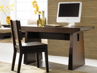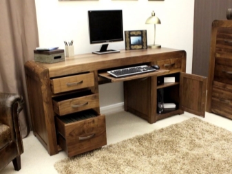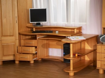 - مكتب كمبيوتر. هذه قطعة أثاث مريحة وعملية تسمح لك بترتيب جميع مكونات الكمبيوتر الشخصي وتحتوي على جميع الأقسام والمقصورات والأرفف اللازمة لذلك. كقاعدة عامة ، يحتوي الجدول على وحدة إضافية في شكل مستوى منزلق للوحة المفاتيح ، ومربع لوحدة النظام وحامل الشاشة. يتضمن أيضًا أقسام السماعات وحوامل الأقراص.