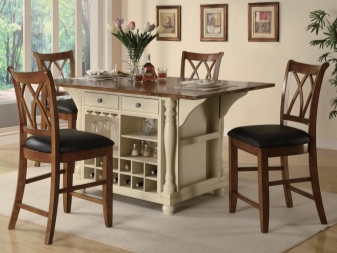 إذا كان لديك غرفة معيشة كبيرة أو مطبخ ، فمن الأفضل وضع طاولة كبيرة هناك. أكبر سطح عمل يمكن أن يزيد طوله عن 150 سم ، وأصغر سطح عمل هو طاولات القهوة. هناك نماذج مدمجة أعلى قليلاً من الأرضية. كقاعدة عامة ، كلما انخفض هذا النموذج ، زاد طول كونترتوب. عادة ما تكون هذه نماذج يابانية لا تتضمن تركيب الكراسي بالقرب منها. إنها مجهزة بوسائد منخفضة للجلوس. تحتوي طاولة القهوة المرتفعة على سطح طاولة صغير وهي أكثر ملاءمة لتزيين الديكورات الداخلية التقليدية.