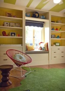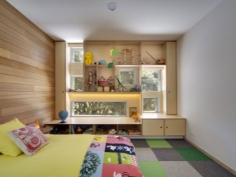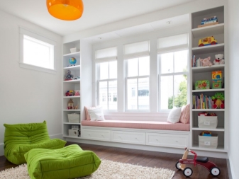 ستسمح غرفة الأطفال المجهزة بشكل صحيح للطفل بالتطور بشكل متناغم ومفيد لقضاء وقت فراغه. من المهم جدًا أن يكون للأطفال مساحة خالية للعب ، لذا فإن تزيين المنطقة المحيطة بالنافذة بخزانة ملابس سيكون حلاً ممتعًا ومريحًا. كقاعدة عامة ، بالنسبة لغرف الأطفال ، سيكون من المثالي تحديد مكان أسفل النافذة لمساحة العمل. يمكن تقديم هذا التصميم بمجموعة متنوعة من الألوان..