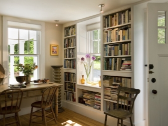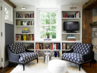 بالنسبة لأولئك الذين يحبون قضاء وقت فراغهم مع كتاب ، فإن التأطير حول النافذة يعد خيارًا مثاليًا. يمكن وضع هذا التصميم في كل من غرفة المعيشة وغرفة النوم. لا تشغل المكتبة المنزلية مساحة كبيرة ، وستكون كتبك المفضلة دائمًا في متناول اليد. قم بتخفيف أرفف الكتب بإطارات الصور والهدايا التذكارية لجعل خزانتك أكثر تشويقًا وجاذبية. فكرة رائعة أخرى هي الجمع بين خزانة الكتب وخزانة الملابس.