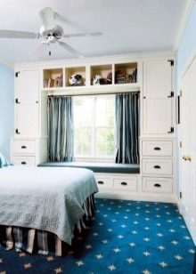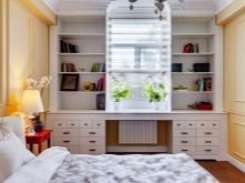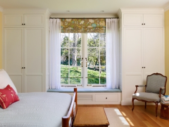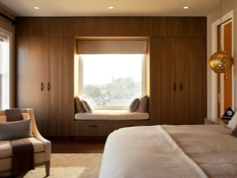 نقضي الكثير من الوقت في غرفة النوم ، لذلك يريد أي شخص أن يكون الجو فيها دافئًا. ستساعدك خزانة الملابس حول نافذة غرفة النوم على تحقيق أقصى استفادة من مساحة النوم والاسترخاء. في هذه الحالة ، يمكن استخدام مقعد النافذة كخزانة ملابس أو خزانة أخرى. إذا سمحت أبعاد النافذة ، فيمكن استخدام المكان على طول النافذة تحت أريكة صغيرة أو كمنطقة صغيرة لمكتب الكمبيوتر. في فتح النافذة ، يمكنك عمل تصميم مثير للاهتمام يتناسب مع نمط الغرفة بأكملها.