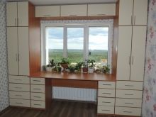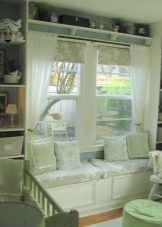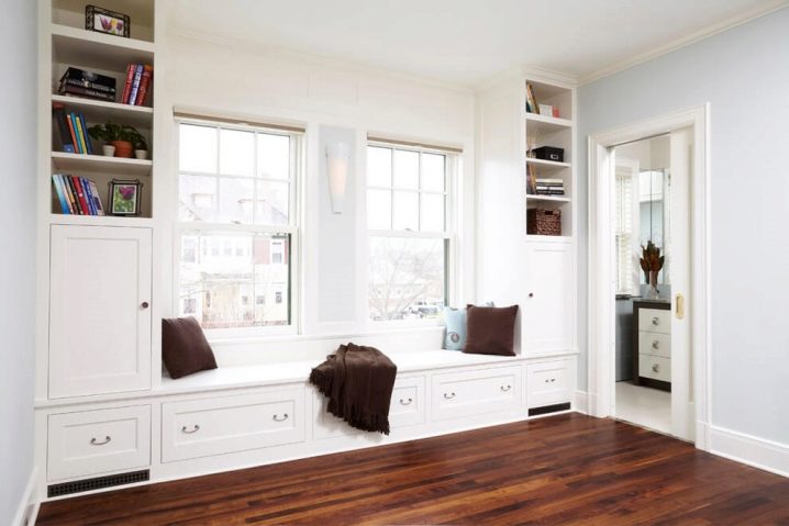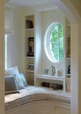 يمكن أيضًا استخدام المساحة الموجودة أسفل النافذة بشكل مربح – لإنشاء سرير مريح على المنصة أو طاولة عمل. إذا تحدثنا عن الصعوبات ، فعند إنشاء مثل هذا التصميم الداخلي ، تحتاج فقط إلى التأكد من أن الحرارة من البطارية تتدفق بحرية إلى الغرفة. ربما يكون هذا هو الطرح الوحيد الذي يمكن حله بسهولة في عصرنا ، ولكن بشكل عام ، فإن خزانة النافذة بها مزايا أكثر بكثير..