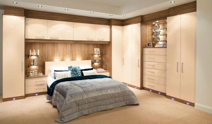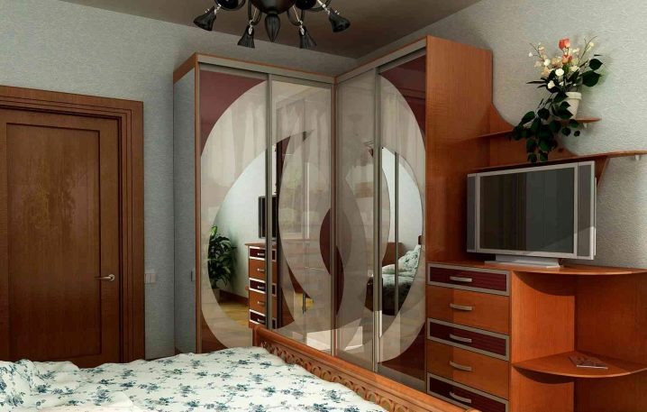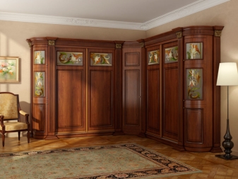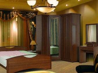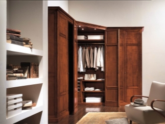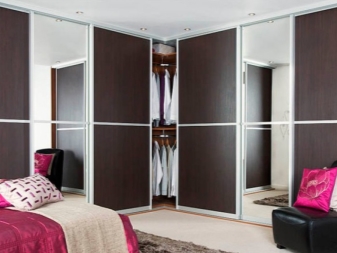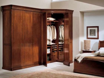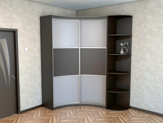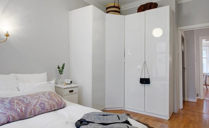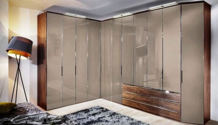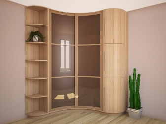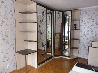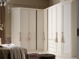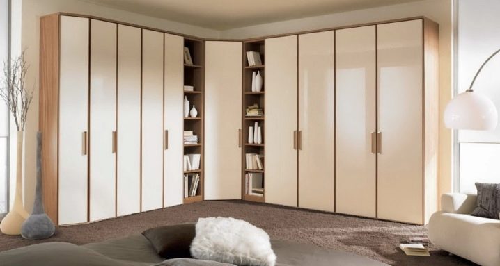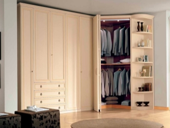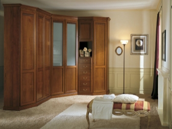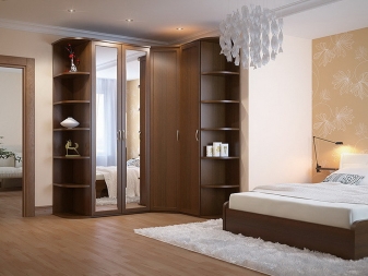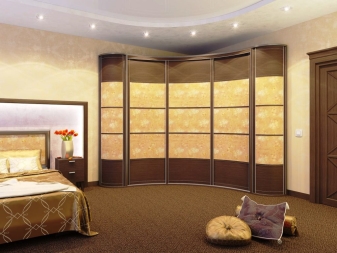 لا يتيح لك تثبيت الهيكل في الزاوية إنشاء مساحة التخزين الضرورية فحسب ، بل يتيح لك أيضًا ملء مساحات الزاوية التي غالبًا ما يتم تجاهلها. يمكن أن يتنوع عدد المقصورات ، فهو يقتصر فقط على رغبات المالك وحجم غرفة النوم. تختلف أشكال الخزانات أيضًا.. بعضها بطلان في غرف النوم الصغيرة., لكن في الغرف الكبيرة تبدو رائعة وفي بعض الأحيان تعمل كغرفة ملابس صغيرة.