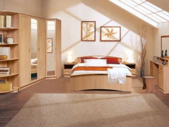 مجموعة كبيرة مع مرآة وطابق نصفي وجهاز تلفزيون سوف تتناسب بشكل جيد فقط مع غرفة نوم كبيرة ، بينما في غرفة صغيرة ستبدو خارج المكان. بالنسبة لغرف النوم الصغيرة ، يوصى بإخراج عنصر واحد فقط من العناصر المدرجة والتغلب عليه. على سبيل المثال ، من الأفضل اختيار الطرز التي تحتوي على حامل تلفزيون مع وجود حقائب مقلمة ضيقة على الجانبين..