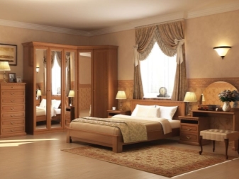 - ل كلاسيكي غرف النوم ، التصميمات المعيارية مناسبة ، حيث يتم دمج المقصورات بدون أبواب والأبواب بشكل متناغم. يجب أن تشغل خزانة الزاوية محيط الجدار بالكامل مع اللوح الأمامي. يمكنك استخدام إدراج المرآة والتذهيب والأنماط.