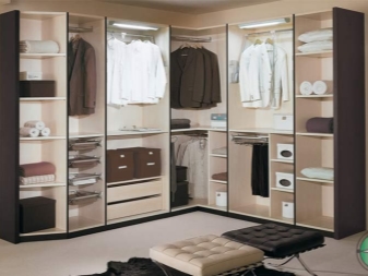 تسمح لك خزانة الملابس الكلاسيكية على شكل حرف L مع العديد من المقصورات لتخزين الأشياء المختلفة بوضع ليس فقط الملابس ، ولكن أيضًا الأدوات المنزلية ، على سبيل المثال ، بياضات الأسرّة ومناشف الحمام وما شابه. هذه الخيارات الكبيرة مناسبة تمامًا للشقق الصغيرة ، حيث تكون غرفة النوم هي المكان الوحيد المناسب لتخزين الأشياء..