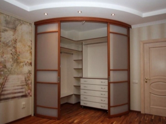 هناك خيارات توفر المساحة بفضل آلية فتح الباب ، وهناك نماذج التأرجح الكلاسيكية. يختلف السعر بالنسبة لهم ، بالإضافة إلى إمكانية استخدام آلية فتح واحدة أو أخرى في كل شكل من أشكال البناء (على سبيل المثال ، لا يمكن تجهيز خزانة الملابس المنحنية بأبواب منزلقة). بالنسبة لغرفة النوم ، يتم استخدام كلا الخيارين على قدم المساواة. أيضًا ، غالبًا ما تُستكمل الأبواب بإدراج أو نقوش مرآة.. في السنوات الأخيرة ، غالبًا ما تم استخدام عينات ذات إضاءة خلفية ، والتي تعمل بمثابة ضوء ليلي كبير..
