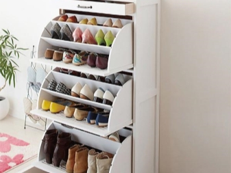 - مع رف أحذية. يصل عرض النموذج الضيق لخزانة الأحذية إلى 20 سم ، نظرًا لتنوع الألوان والقوام ، يمكن أن يتناسب بشكل متناغم مع أي تصميم. غالبًا ما يستخدم رف الأحذية ليس فقط لتخزين الأحذية ، ولكن أيضًا كديكور ، ووضع عناصر زخرفية مثيرة للاهتمام عليه.