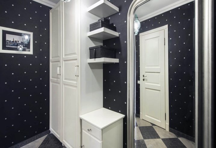 نماذج الرفوف الضيقة مع الأرفف تختلف في الأسلوب والراحة. إذا كانت الملابس مخزنة بشكل أساسي في خزانة بأبواب عمياء ، فإن التصميمات ذات الأرفف المفتوحة تستخدم للزينة ، يمكنك وضع أشياء صغيرة ضرورية عليها: مفاتيح ، أمشاط ، مظلات وأكثر..